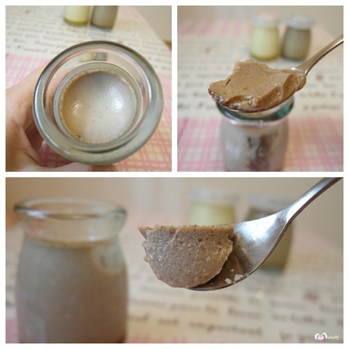 焦糖是水水的液體狀的,跟一般機器布丁那種QQ的焦糖不同,